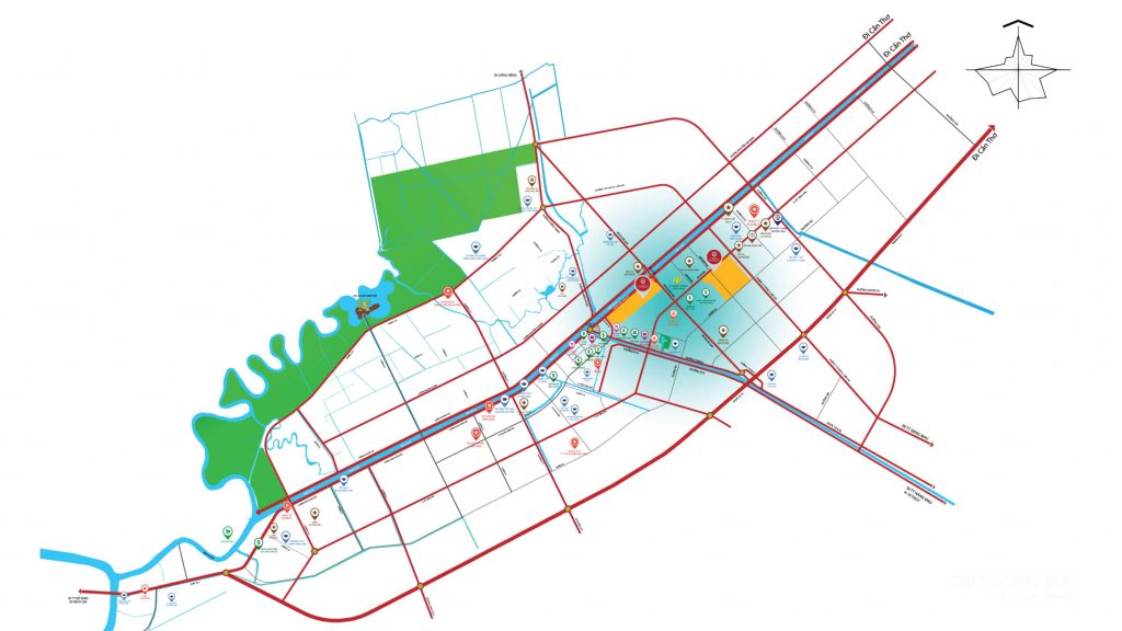 Tiếp giáp với nhiều tuyến đường huyết mạch cư dân tại đô thị sẽ dễ dàng di chuyển tới các trung tâm thương mại, kinh tế đồng bằng sông Cửu Long. Nơi đây sẽ là điểm đến kinh doanh, du lịch của mọi cư dân tại khu vực miền Tây.