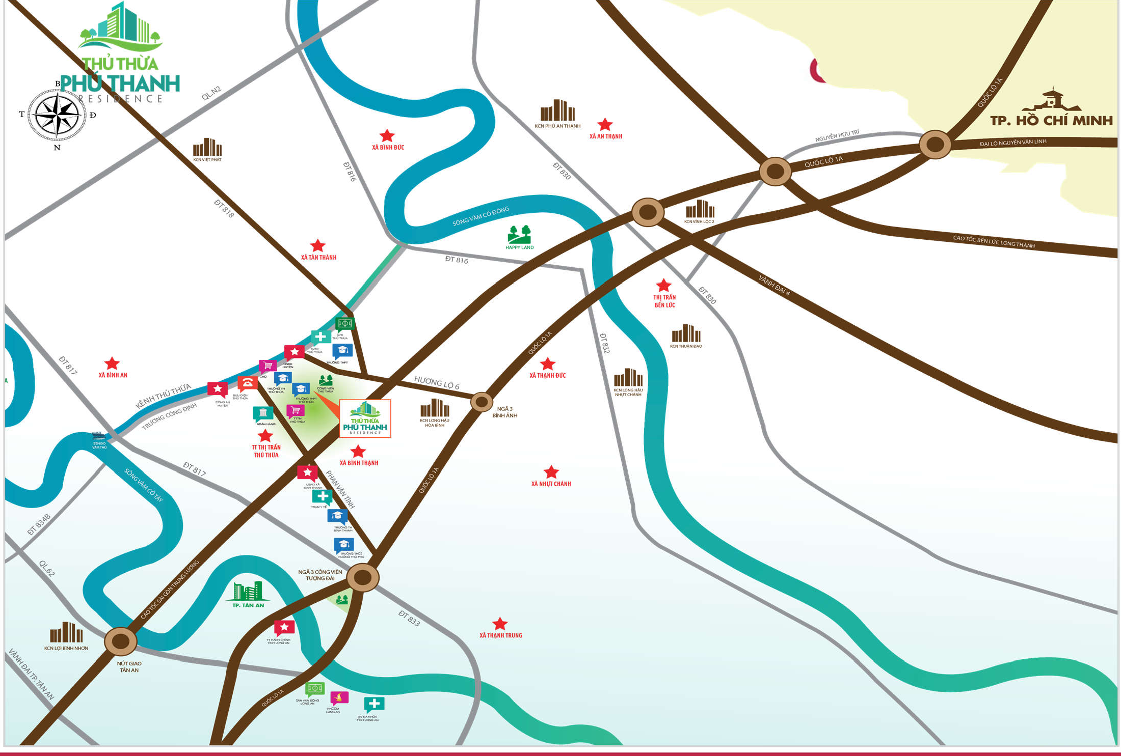 Nằm ngay mặt tiền đường Phan Văn Tình và Hương Lộ 6, trung tâm Thị trấn Thủ Thừa, kết nối trực tiếp với TP.HCM, các tỉnh miền Đông và Tây Nam Bộ bằng hệ thống giao thông kép qua tuyến cao tốc TP.HCM – Trung Lương, Quốc Lộ 1A, QL.N2, Vành Đai 4, sông Vàm Cỏ… Liền kề các công trình trọng điểm: Trường THPT Thủ Thừa, Công viên, Trung tâm thương mại, Viện kiểm soát… Chỉ cách TP.HCM 30 phút và thành phố Tân An 10 phút chạy xe.